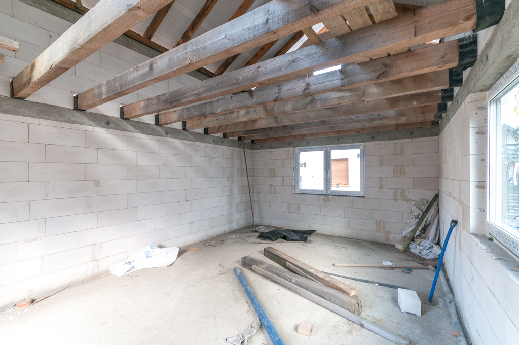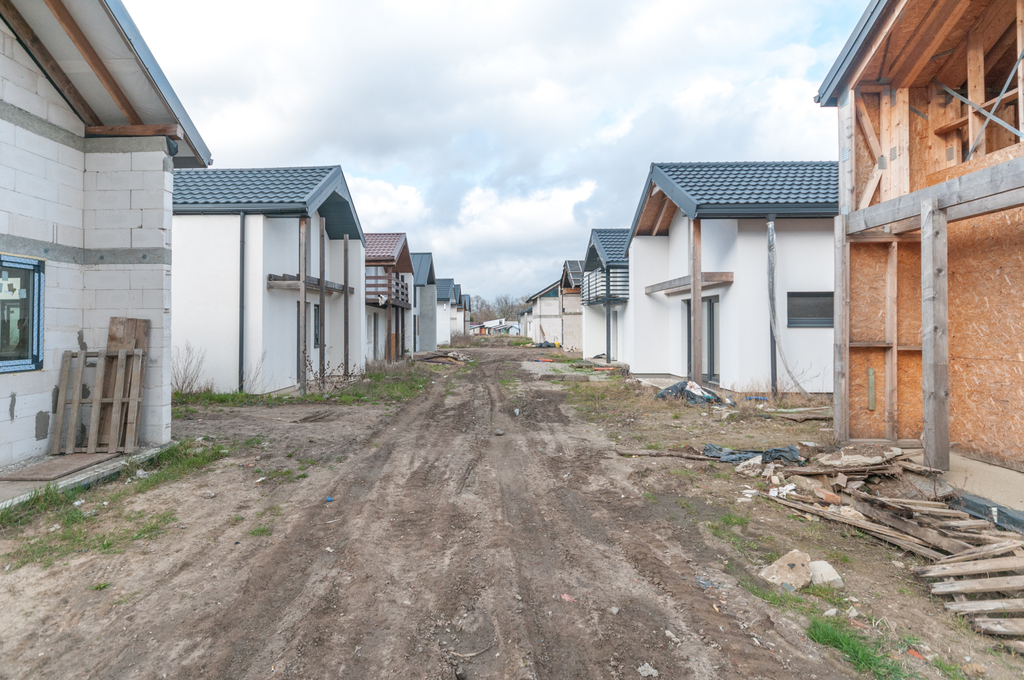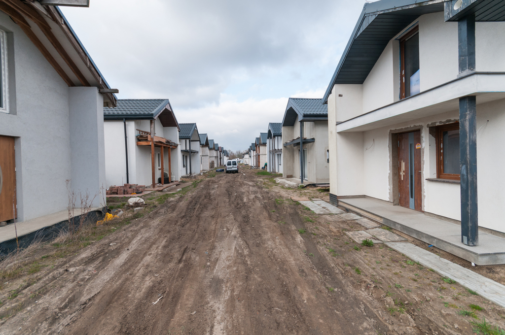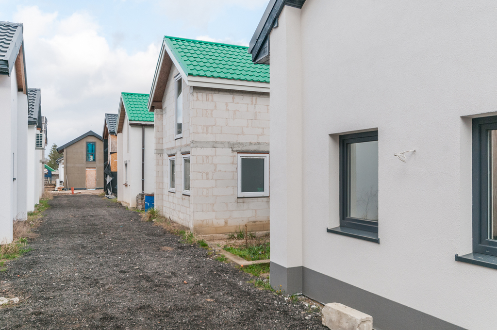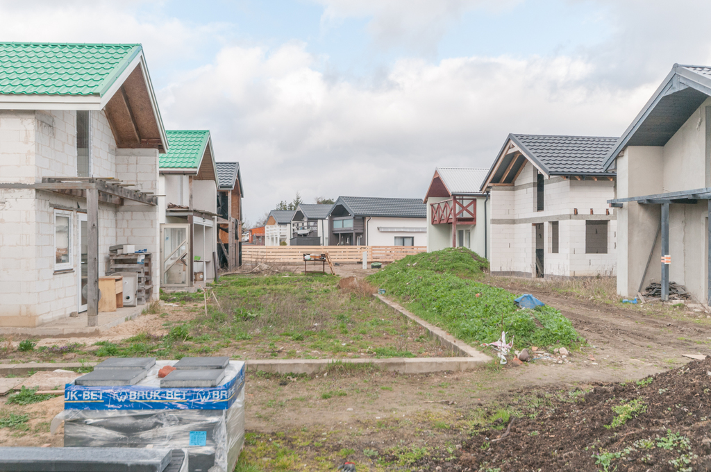 Dom w stanie surowym zamkniętym ze stolarką okienną.