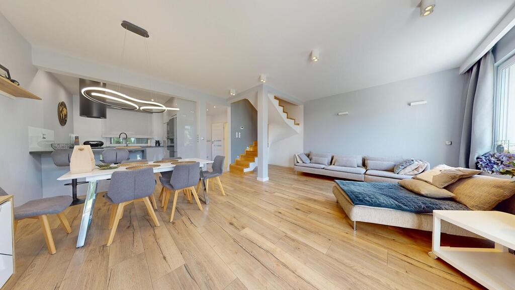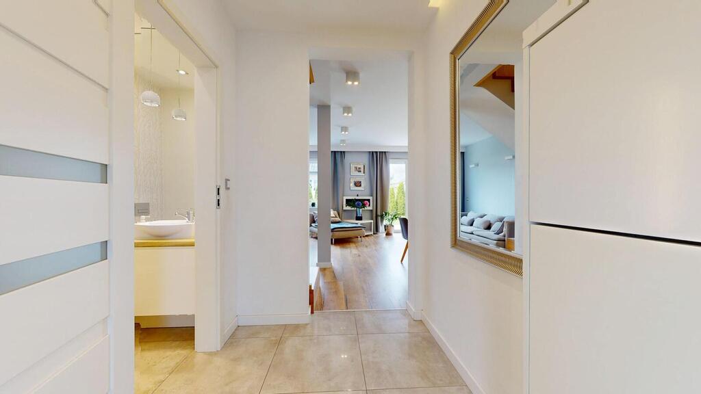 Przedmiotem sprzedaży jest połowa bliźniaka z 2017 roku o powierzchni użytkowej 95.98 m2. Na tę powierzchnię składają się: