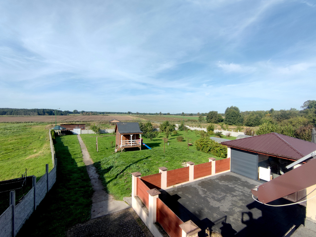 Dom stoi na działce o pow. 1.896 m2. Z przodu domu duży plac - możliwość wykorzystania na parking, dodatkowe garaże, magazyny lub inną zabudowę.