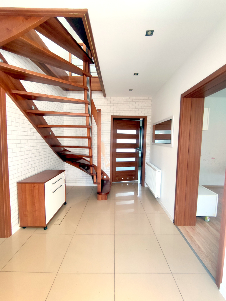 W budynku położone są nowe tynki, ściany wygładzono i pomalowano. W pokojach na podłogach panele.